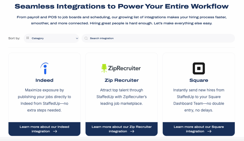 - Integration with POS or scheduling systems – Saves time and reduces duplicate work. Check out the StaffedUp + Square integration recently launched. Game changer for connecting POS with hiring.